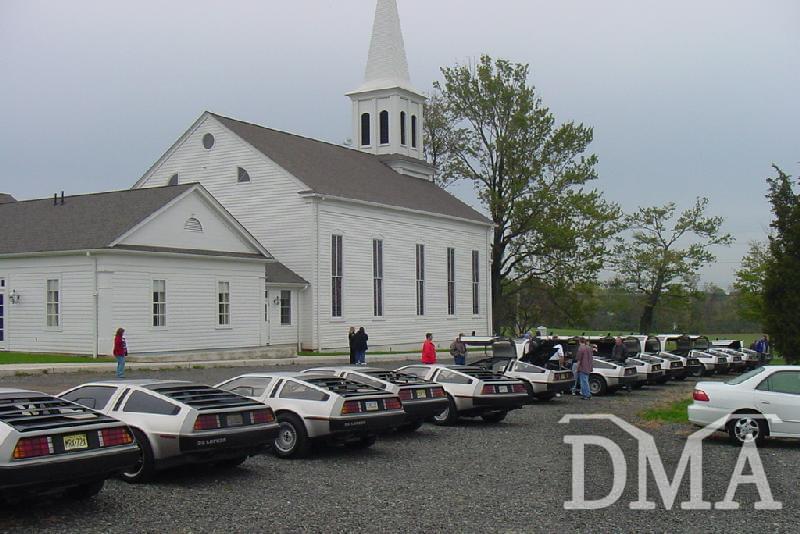 Since the grounds on the estate would not be available until after noon on Saturday, we chose to meet at a small church down the road. One by one, our group grew to a larger size. It was in the parking lot as we waited to caravan to the estate that something interesting AND highly unexpected happened. A car of "passers by" stopped to look at the site of all our cars lined up in preparation for the start of our event. A woman by the name of Day Hellwig approached me and was ecstatic to see us! As it turns out, Day's family was the original owners of the former DeLorean Estate and later sold the property to John DeLorean.