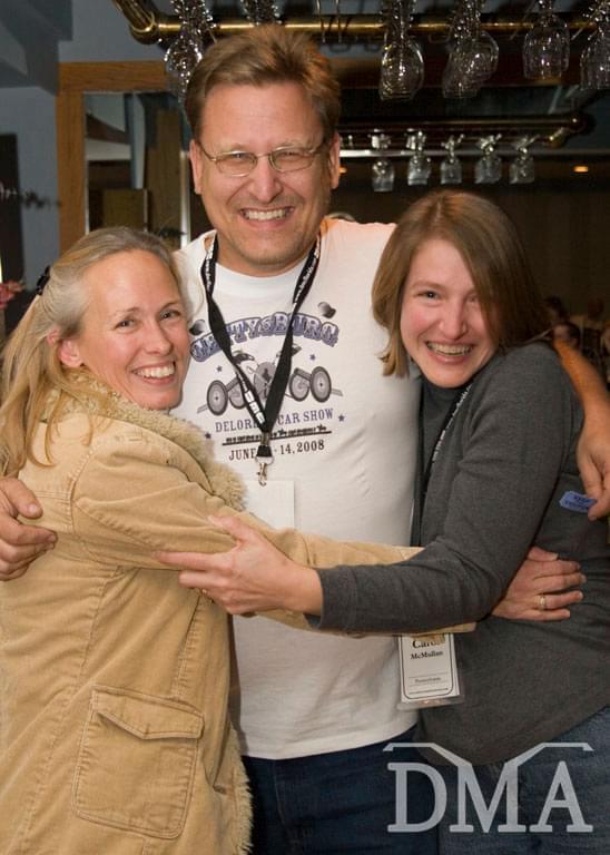 Chris and Ken Koncelik hug a VERY excited Carol McMullan who won a free DCS 2008 registration