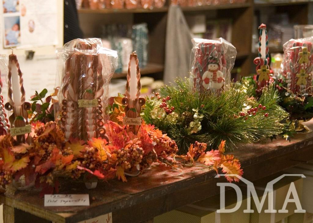 Just a small sample of the many holiday decorations the Pocono Candle factory has to offer