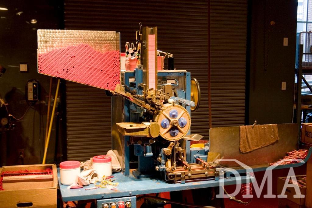 This Crayon lableling machine can wrap 200 Crayons a minute. Before it was invented in the early 1930s, local farmers were paid in the winter season to wrap crayons. The fastest farmer could wrap 19 crayons per minute.